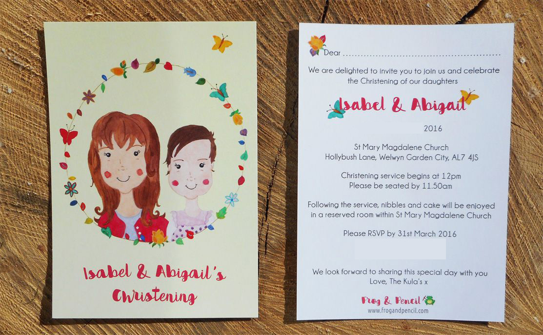 kula-christening-invite-closeup Previous Next Published March 18, 2016 at 1113 × 687 in A Kula Christening Commission! Kula Christening Invitation front & back.